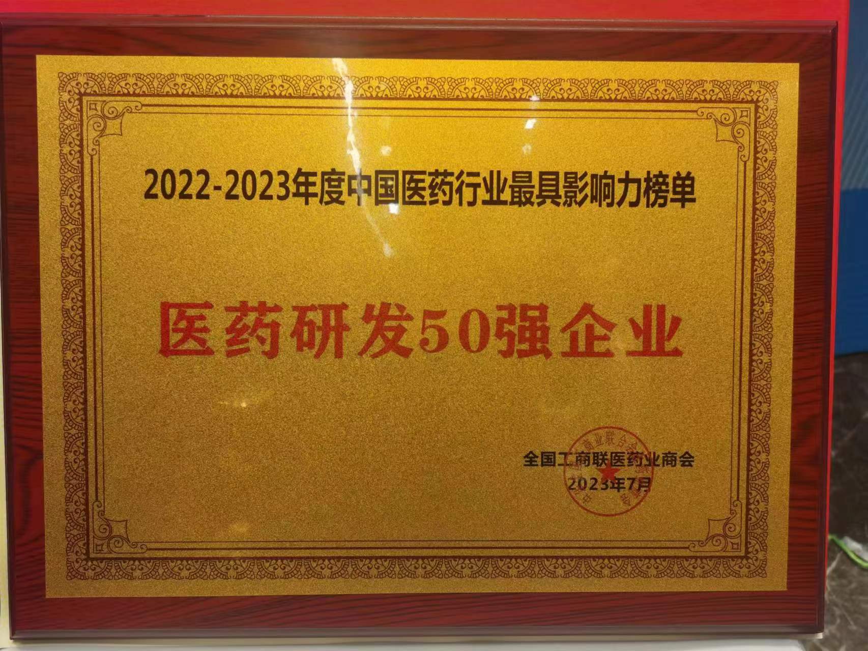 2023年7月4日,由全國工商聯(lián)醫(yī)藥業(yè)商會(huì)、黑龍江省工商聯(lián)、黑龍江省發(fā)改委共同主辦的“2022-2023年度中國醫(yī)藥行業(yè)最具影響力榜單發(fā)布會(huì)第十五屆中國醫(yī)藥產(chǎn)業(yè)發(fā)展高峰論壇”正式發(fā)布了——“2022-2023年度中國醫(yī)藥行業(yè)最具影響力榜單”,華威醫(yī)藥憑借自身雄厚實(shí)力再次榮耀入選“中國醫(yī)藥研發(fā)50強(qiáng)企業(yè)“。