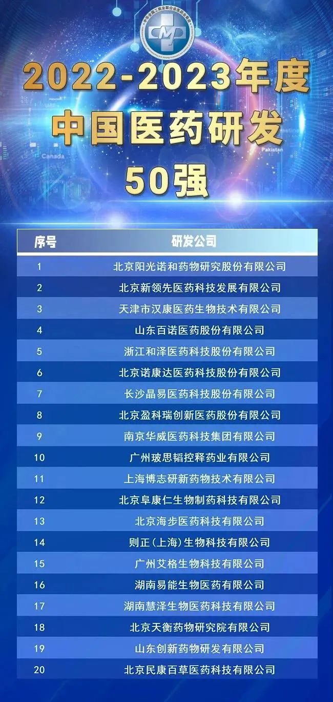 中國醫(yī)藥研發(fā)50強(qiáng)榜單